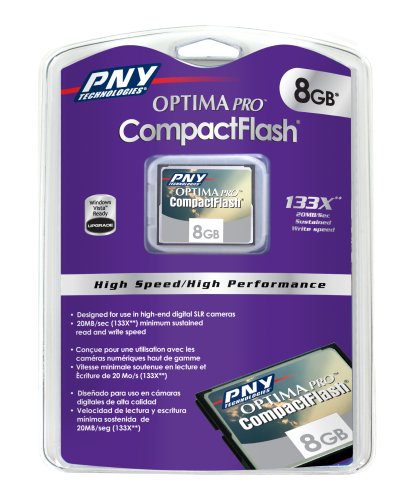 PNY Optima Pro 8 GB 133x CompactFlash Memory Card P-CF8GB-133W-DVDC